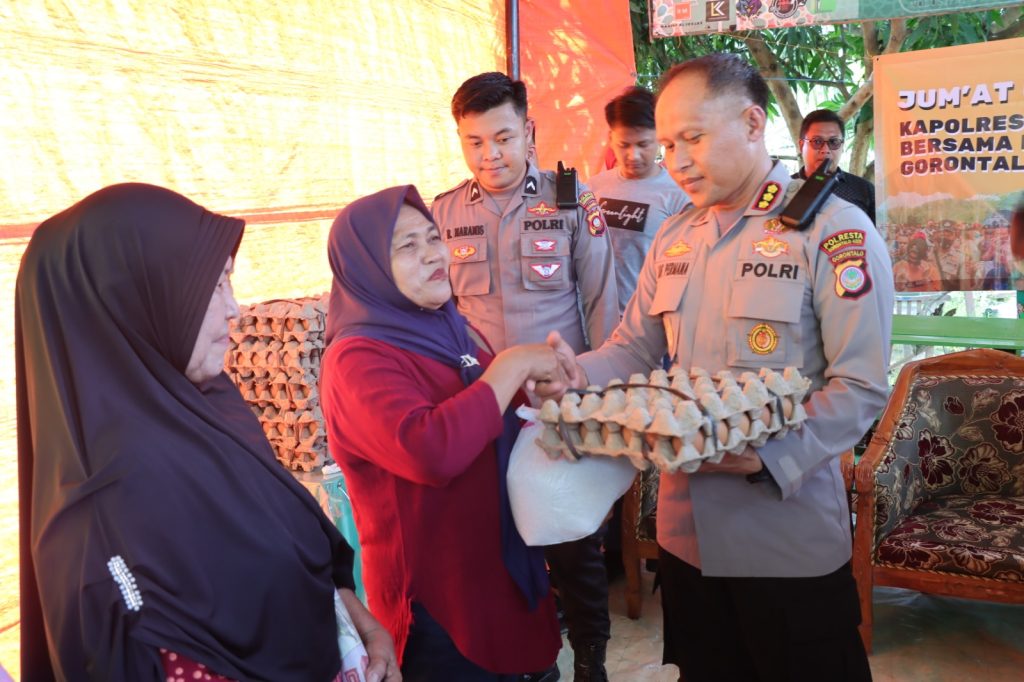 KBP Ade Mengatakan Pemberian sembako yang juga di dampingi oleh PJU Polresta Gorontalo Kota ini merupakan salah satu wujud kepedulian Polri kepada masyarakat yang ada di Kota Gorontalo