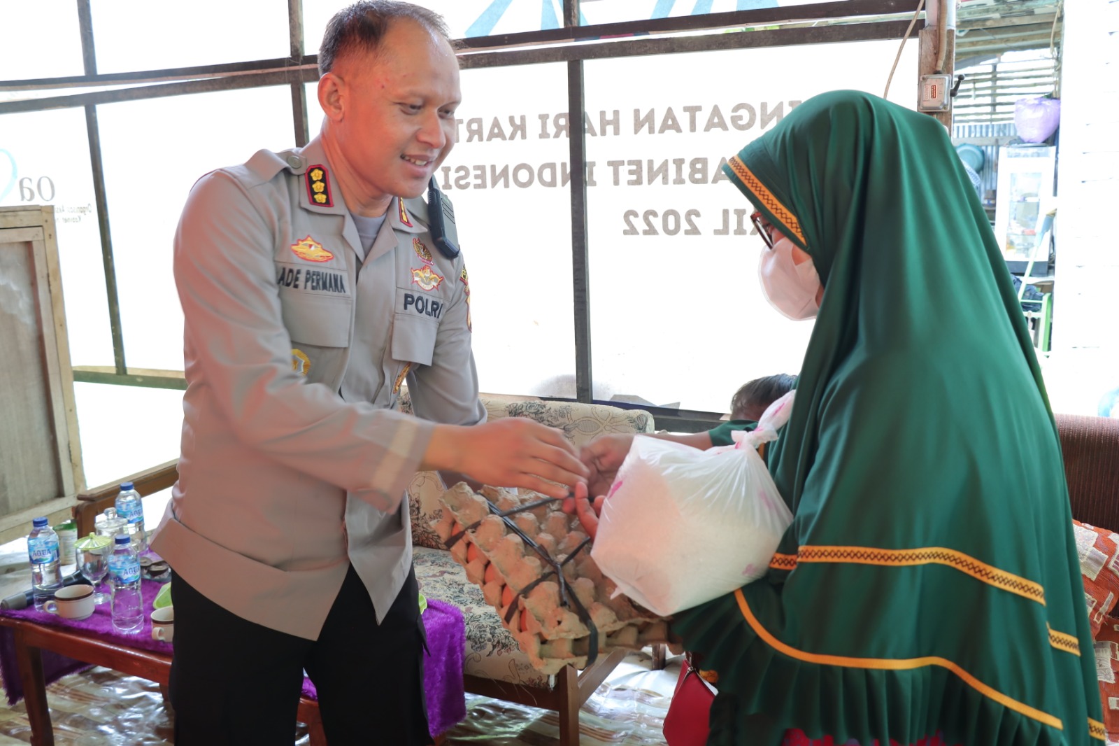 PolrestaGorontaloKota,Kapolresta Gorontalo Kota Kombespol Dr.Ade Permana,S.I.K,MH menebar kebaikan dengan berbagi sembako pada masyarakat yang ada di Kelurahan Molosifat W Kecamatan Kota Barat Kota Gorontalo,Jumat (3/2)