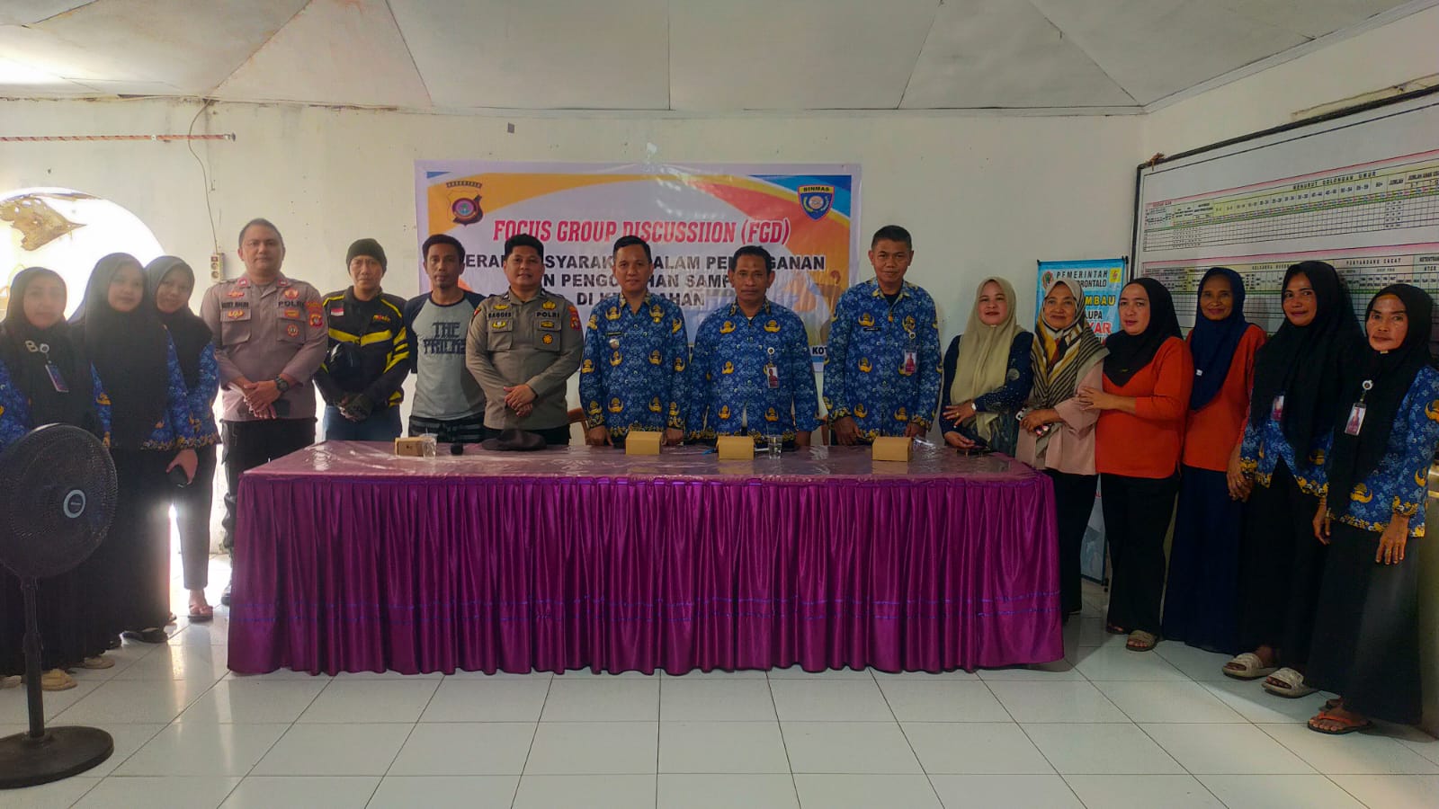 Hadir dalam kegiatan tersebut perwakilan Sat Binmas Polresta Gorontalo Kota yang dipimpin oleh Kasubnit Bintibmas Aipda Rahmat Bowta, didampingi Aiptu Agus Meono dan Aipda Risky Maliki. Turut hadir Camat Hulondhalangi, Bapak Ramli Taliki, S.TP, Kabid Kebersihan DLH Kota Gorontalo, Bapak Ansar Ismail, SE, serta Lurah Pohe, Bapak Hamid.B.